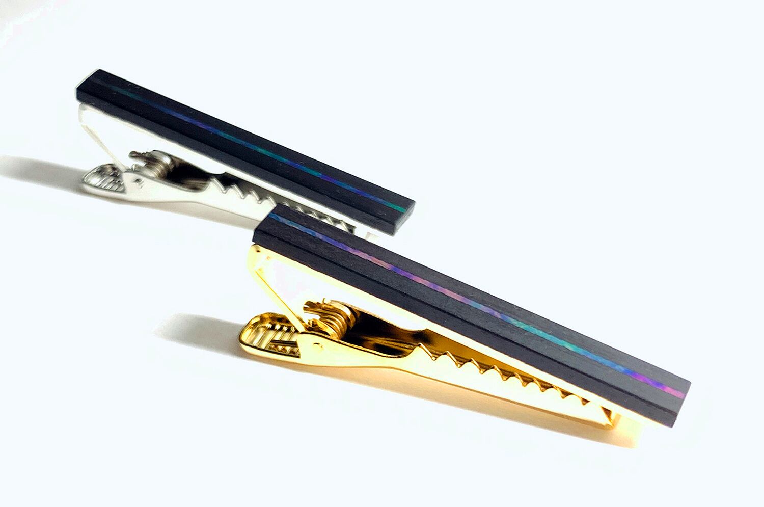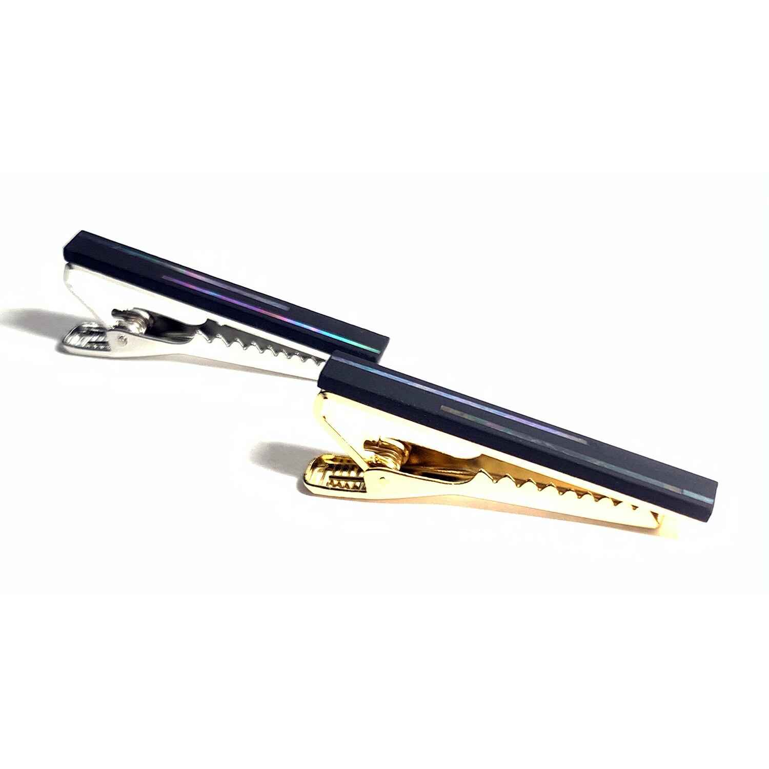 夜光貝を漆で貼りつけ、錆漆*1で仕上げたシンプルで高級感のあるネクタイピンです。