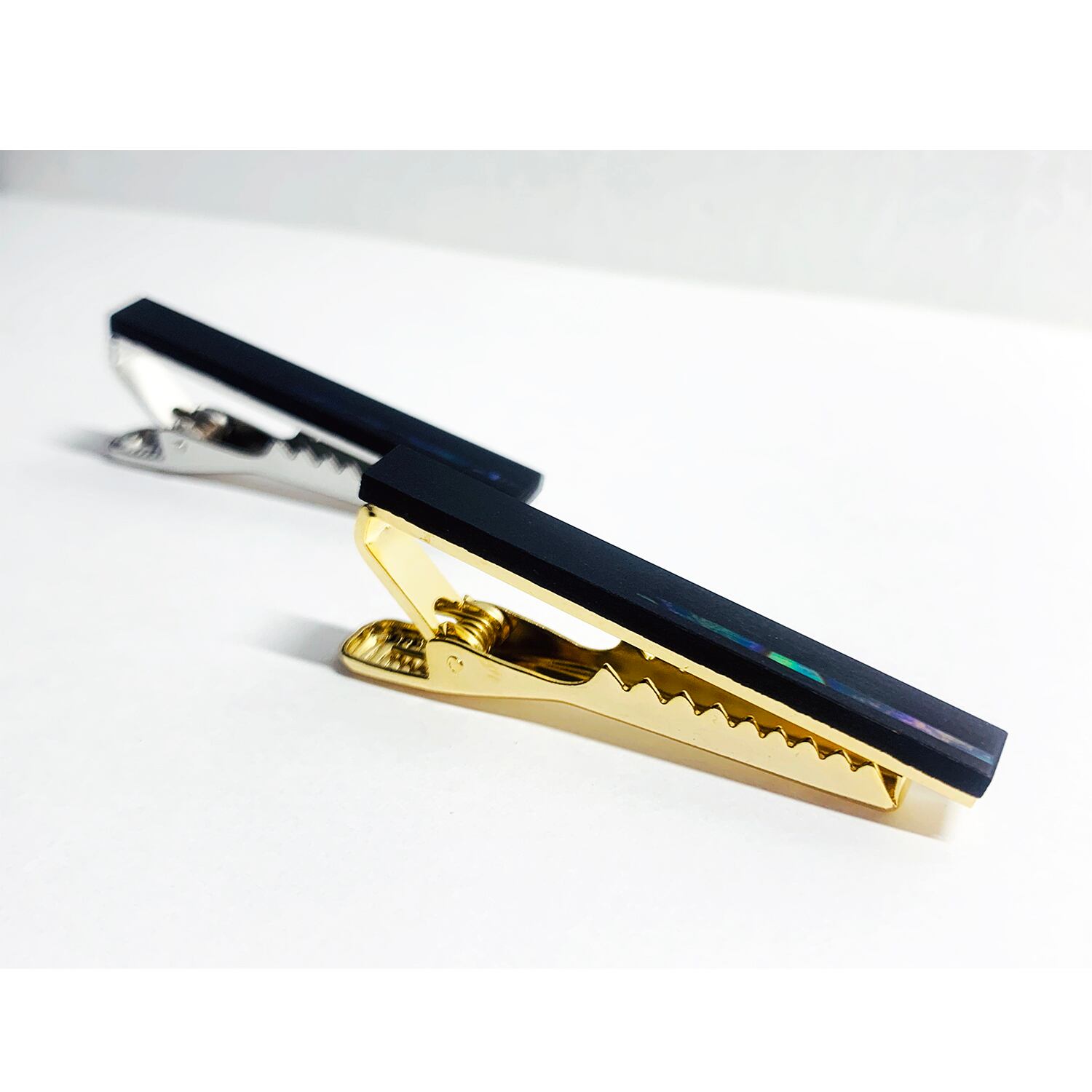ニュージーランド鮑貝を漆で貼りつけ、錆漆*1で仕上げたシンプルで高級感のあるネクタイピンです。