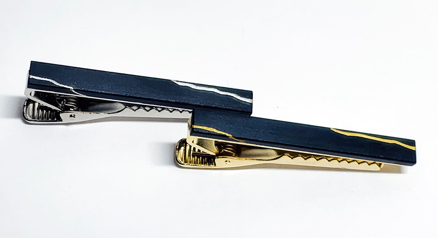 マットな錆漆*1に金継ぎor銀継ぎをしたネクタイピンです。